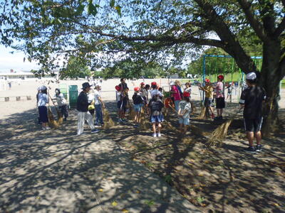 昼休みに、ハッピースマイル活動をしました。今日は、鉄棒周辺の落ち葉掃除を行いました。