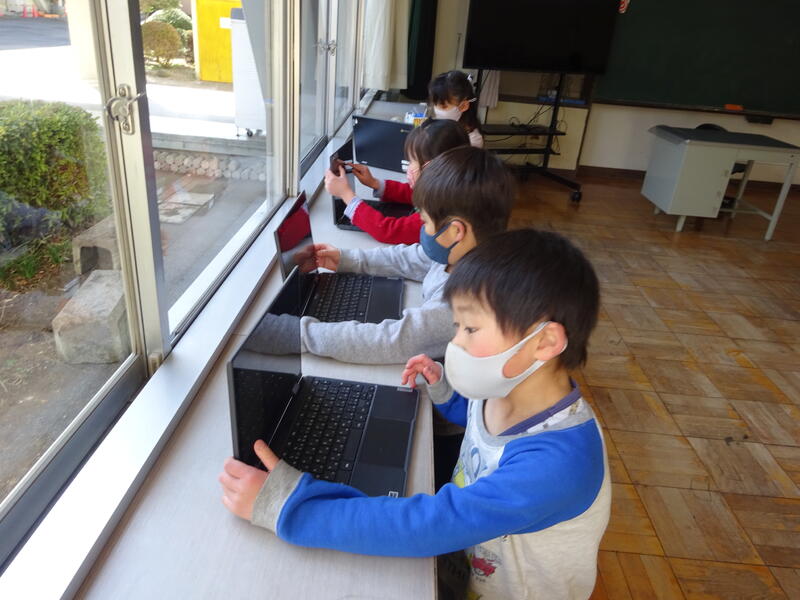 「にょきにょきとびだせ」という単元で、子どもたち一人一人がクロームブックを使い、動画を撮影しています。