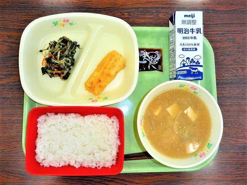 今日は、さくら市産のみそを使って、豆腐とわかめのみそ汁にしました。