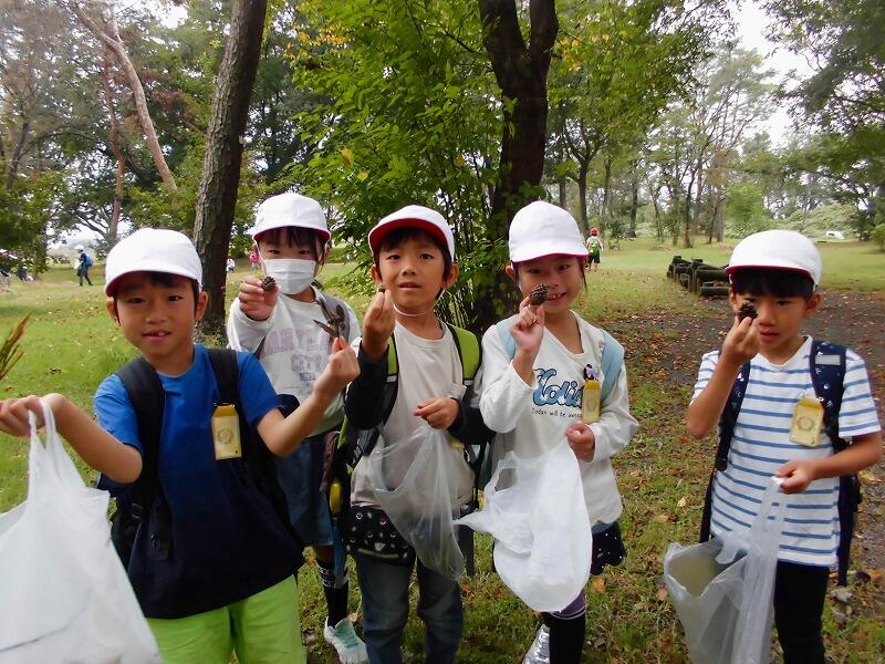 今日は、一年生が生活科校外学習でグリーンパークに秋探しに行きました。