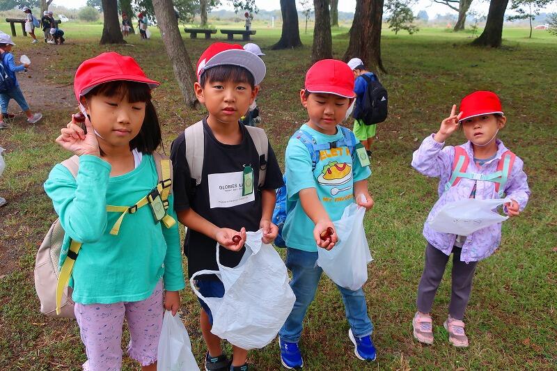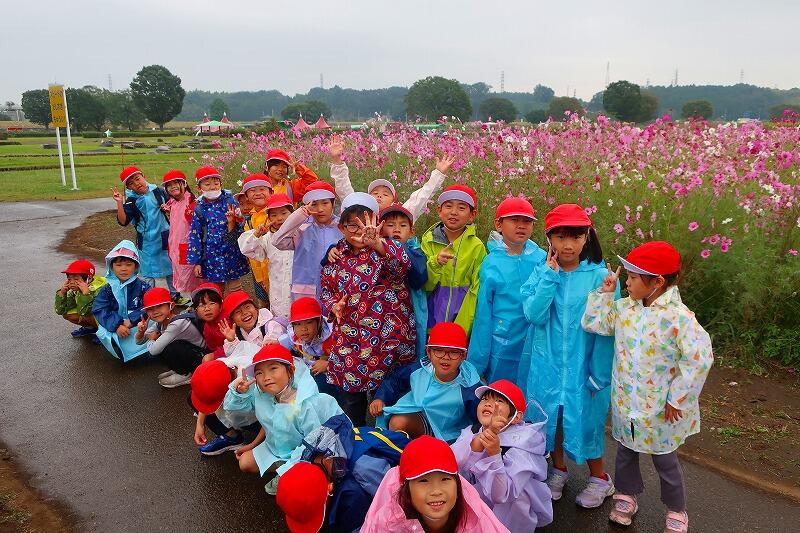 あいにく、不安定な天気になってしまいましたが、子どもたちは、コスモスを見たり、木の実をたくさん拾ったりして、楽しく秋探しをすることができました。