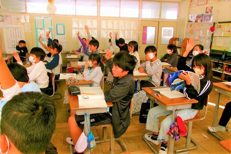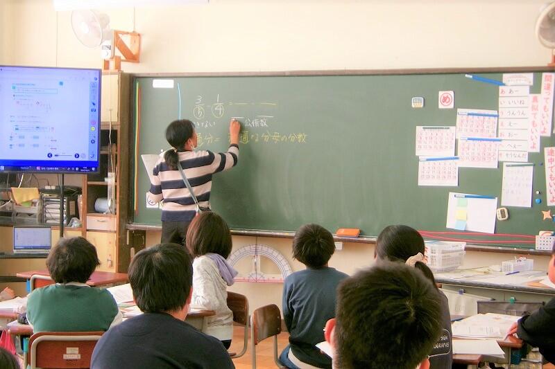今日は、3年目研修の一環として、2年3組と4年2組で授業研究が行われました。