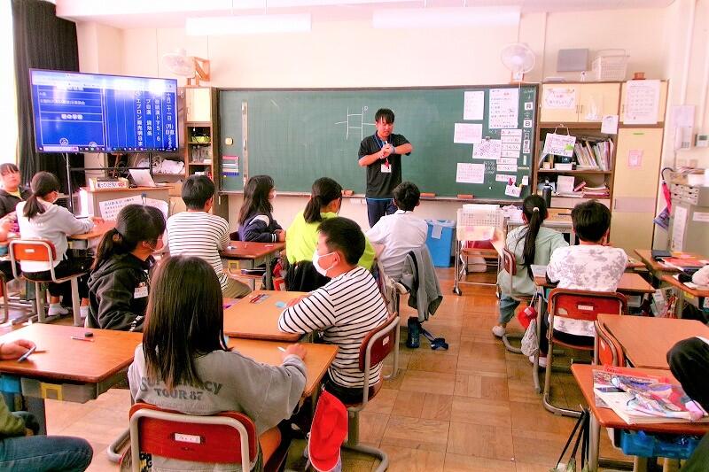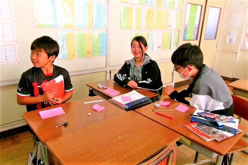 学級活動です。2学期に入って席替えをしました。同じ班の人と親しくなれるよう、グループアクティビティに取り組んでいます。