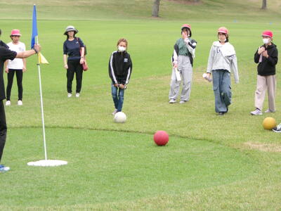 さくら市では、若年世代へのフットゴルフの普及啓発を目的としてフットゴルフ体験授業を行っています。今日は6年生が、市内のゴルフ場「セブンハンドレッドゴルフクラブ」で体験授業を行いました。フットゴルフの日本代表選手をはじめ競技をしている方が指導してくださり、児童は大変楽しく体験ができました。来週は5年生が校庭でフットゴルフ体験授業を行う予定です。