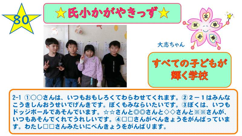 ※ ホームページでは、児童の氏名の部分を○○さんに変えています。