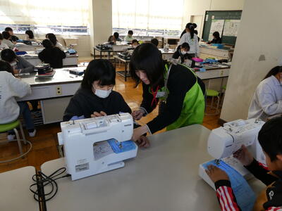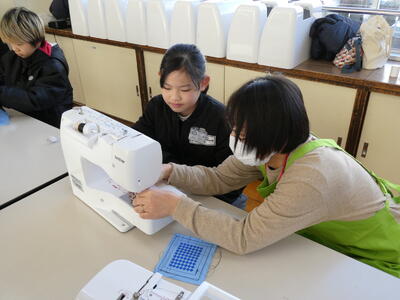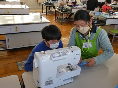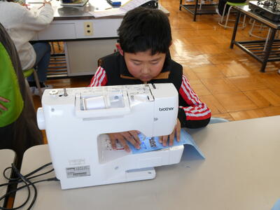 本日、5年生が、家庭科でミシンの実習を行いました。ミシンは便利な道具ですが、使い方を誤ると危険でもあります。そこで、今日はミシンサポート隊の方が来校され、5年生の児童に基本的なミシンの使い方を教えてくださいました。5年生は、話をよく聞いて、慎重にミシンの使い方を練習していました。今日教わったことをもとに、今後、エプロンなどの作品を作っていきます。御協力ありがとうございました。