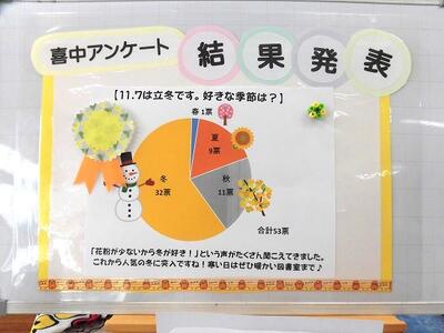 校内を巡回していると、青空に映える紅葉に囲まれた環境のすばらしさをあらためて感じます。本日で1・2年生は、中間テストが終了し、テストを返却している授業もありました。しっかり振り返り、今後に生かしてほしいと思います。また、3校時にさつまいもの収穫を行いました。本日、「食物アレルギー・既往症に関する調査票の提出について」の案内を1・2年生に配付しました。よろしくお願いいたします。