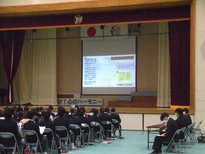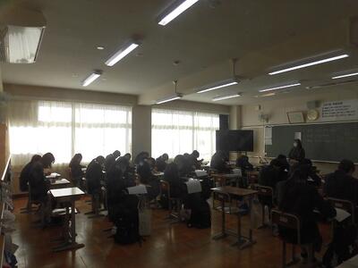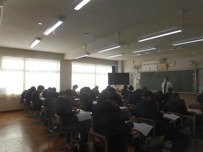 本日の5・6校時に、3年生の生徒・保護者対象の県立高校説明会を実施しました。自分自身が思い描いた進路選択ができるようにしっかりと入試制度を理解し、志望校を選択してほしいと思います。