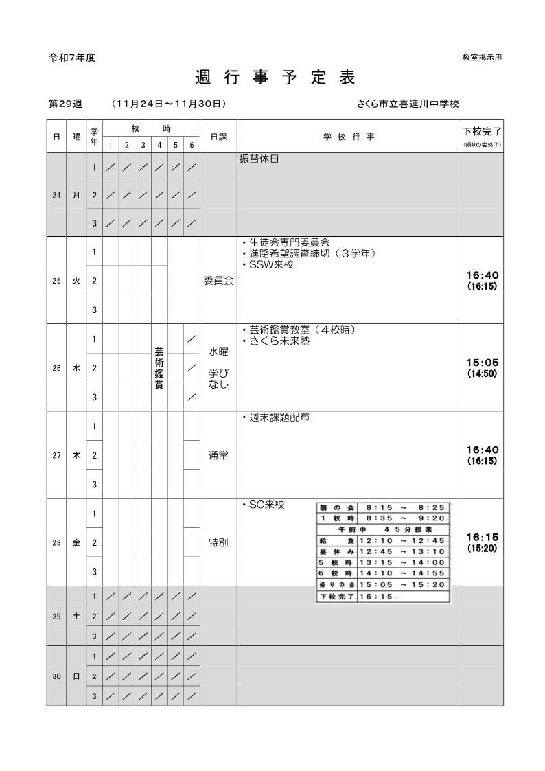 11月24日~30日の週行事予定