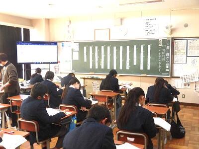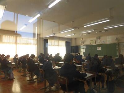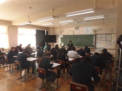 本日は曇り空で、昨日より寒い一日となっています。校内を巡回し授業の様子を見ると、多くの授業でテストを返却していました。