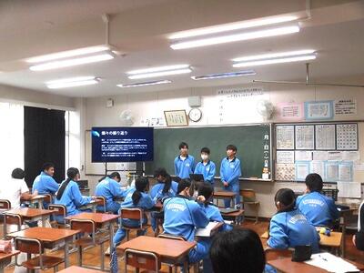 本日の5・6校時に授業参観として、総合的な学習の時間に学んできたことの発表会を行いました。3年生は、講師としてお世話になった方達を招待し、2年生は、マイチャレンジを受け入れていただいた事業者の皆さんを招待して行いました。御協力いただいた地域の皆様、大変お世話になりました。また、保護者の皆様、授業参観にお越しいただきありがとうございました。