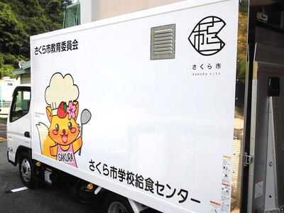 本日から、さくら市学校給食センターからの給食がスタートしました。お椀や食器には、センターのマスコットキャラクラーのさくらこがプリントされています。センターでは、一日約4000食つくられ、市内各小中学校に配送されます。本日の献立は以下になります。