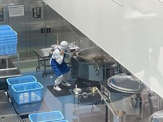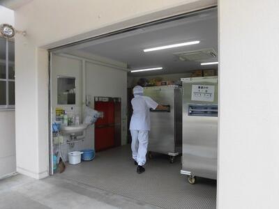 また、本日午前中に、市学校給食センターにおいて研修があり、調理のようすを見学させていただきました。きんぴらとみそ汁の調理をしているところでした。