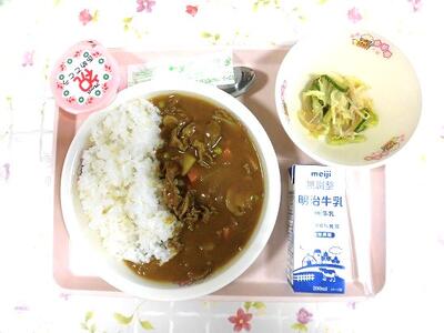 【献立】ごはん、牛乳、チキンカレー、イタリアンサラダ、県産ヨーグルト