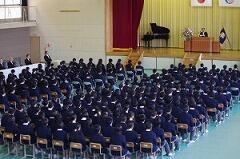 新入生101名は、緊張しながらも呼名にしっかりと応え、新しい中学校生活への意欲が感じられました。