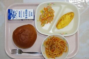 ミルクパン、牛乳、オムレツ、ツナ人参サラダ、ナポリタン