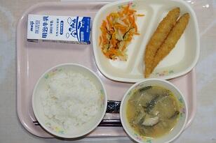 ごはん、牛乳、ししゃもフライ、塩昆布あえ、根菜ごま汁