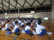 9/18(火)の放課後、8月に市から平和記念式典に派遣された2名の生徒による報告会がありました。映像を交えながら、平和記念式典に先立ち、被爆された方からお話をいただいたことや平和記念式典での小学生の「平和の誓い」から「人間は、美しいものをつくることができる。 人々を助け、笑顔にすることがでる。しかし、恐ろしいものをつくってしまうのも人間…。」が強く印象に残っていること、また、派遣事業を通して、多くの人々が平和を願っていること、どうすれば平和が実現するのか意識し行動していきたいことなどを素直に自分の言葉で報告していました。