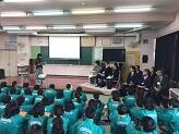 12/9(金)、キャリア教育の一環として、市内の福祉事業所の方々をお招きして、お話をいただきました。実際に携わる方のお話は具体的で分かりやすいものでした。学校では地域と連携しながら様々な機会を設けて、職業に対する見方や考え方を広げていきたい考えています。