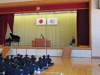 4/10(月)に新しく本校に赴任された9名の職員の着任式を行いました。その後、平成30年度第1学期始業式を実施しました。修了式から2週間あまりですが、新2年生も新3年生もぐっと大人になったように感じました。代表生徒の発表では、「苦手教科をなくす」「基礎・基本に戻って確かなものにしていきたい」など、一つ前の学年の時の反省を踏まえて、今学期の抱負を力強く発表していました。