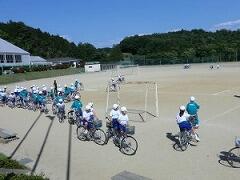 1年生は、校庭に模擬道路をつくり横断歩道の渡り方を学習しました。