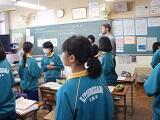5/13(金)5校時に市ALTの研修会が本校で行われました。1年生の授業ではALTとT・Tを組んでテンポよく英語を使ったコミュニケーション活動が展開されていました。生徒たちも意欲的に取り組んでいて、小学校での外国語活動と接続がうまくいっていることを感じさせるものでした。