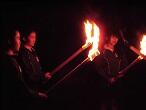 ・ステージで心を一つに我がクラス 燃える火の前絆深まる
