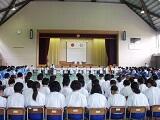今年度の生徒会総会が、「溢れる笑顔 繋がる挨拶 活力みなぎる喜中生」のスローガンの下、5/26(木)の午後に開かれました。本校の生徒総会の特色は、全生徒の意識を高めるために、コの字型の形態で行うところです。学校長からは、特別活動の「なすことによって学ぶ」という特色や生徒会活動の意義、今年度の生徒会への期待などについてお話があり、その後、今年度の計画や予算について協議されました。