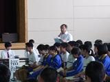 今年度の生徒会総会が、「溢れる笑顔 繋がる挨拶 活力みなぎる喜中生」のスローガンの下、5/26(木)の午後に開かれました。本校の生徒総会の特色は、全生徒の意識を高めるために、コの字型の形態で行うところです。学校長からは、特別活動の「なすことによって学ぶ」という特色や生徒会活動の意義、今年度の生徒会への期待などについてお話があり、その後、今年度の計画や予算について協議されました。