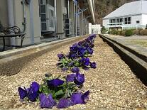 今日はぽかぽか陽気。昼休みは多くの生徒が外に出ていました。パンジーも彩りを増してきました。