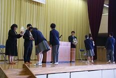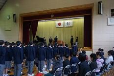 4/16(月)の午後、本校を去られた6名の先生方の離任式を行いました。「喜中はやりたいことができる学校」「やり切ることが大事」「夢は諦めなければ叶う」「勉強に運動にがんばってほしい」など、先生方から生徒たちにお話がありました。生徒会長から先生方に「これからも教えていただいたことを忘れずに、しっかりとした学校生活を送っていきます。」と、お別れのあいさつと決意がありました。先生方のご恩に報いるためにも喜中生にはいっそうがんばってほしいと思います。