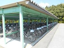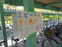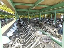 今日の自転車小屋の様子です。1年生から3年生まで、ヘルメットがきちんとしばりつけられ、車体も整然と並んでいています。