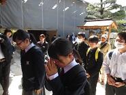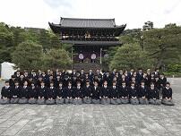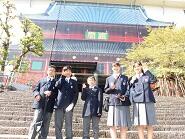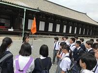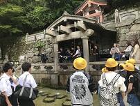 修学旅行最終日は、恒例の旅館の真横にある知恩院山門での記念写真から始まりました。きちんと揃っているところが喜中生らしいです。その後、朝食をとり旅館を後にしました。向かったのは清水寺。写真のように舞台のある本堂は改修中で舞台も工事用の部材で覆われていました。その後、班行動。音羽の滝は今までにないくらいすいていて、生徒たちは御利益があるとされる滝の水を飲んでいました。そして、最後の見学先は三十三間堂。自分や友達に似た千手観音立像をさがしていました。