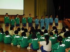 5/15(火)の放課後、体育祭に向けて、赤組・白組の結団式を行いました。まず、体育館でスローガン発表と団長紹介がありました。その後、各団長から意気込みの発表がありました。そして、赤組は体育館で、白組は格技場で各応援団員の紹介があり、最後には円陣を組んで気合いを入れていました。今年度も応援合戦が開催される予定です。どんな応援になるのか今から楽しみです。