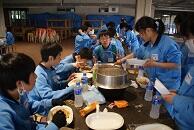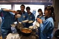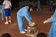 最終日のメインの活動は、野外調理です。この時期には残念ながら野外調理場が使えないため、ピロティで行うことになりました。生徒たちは役割分担しながら、カレーとご飯づくりに挑戦しました。全く同じ食材を使っても各班のカレーの味も、ご飯の味も微妙に違っていました。しかし、どの班も気持ちのこもったおいしいカレーライスになったことと思います。