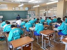 基礎・基本の定着等のため、木曜日(週末課題配布)→(家庭学習)→月曜日(朝テスト)→水曜日(学びの時間:コース別学習)→木曜日(週末課題配布)→…で年間を通して1週間サイクルで取り組んでいます。今日は第1回目の朝テストです。写真は各学年の様子です。真剣に小テストに取り組んでいました。このテストは週末課題をしっかりやっていれば合格ラインの80点は取れるように設計しています。ご家庭でもお子さんの取組を応援ください。