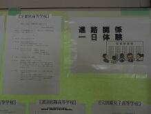 進路指導室前の廊下に高校一日体験学習の各校の案内が掲示されています。本日付で、保護者の皆様宛に、高校一日体験学習についての通知が発出されていますので、ご確認ください。