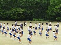 5/29(火)、4校時に全校生が男女に分かれて団体種目の練習を行いました。男子は本校の伝統的種目(開校以来継続して実施している種目)、女子はダンスです。学年毎に練習してきて、本日初めて合わせてやってみたところです。部分の写真で全体像がつかみにくいと思います。当日を楽しみにしていてください。