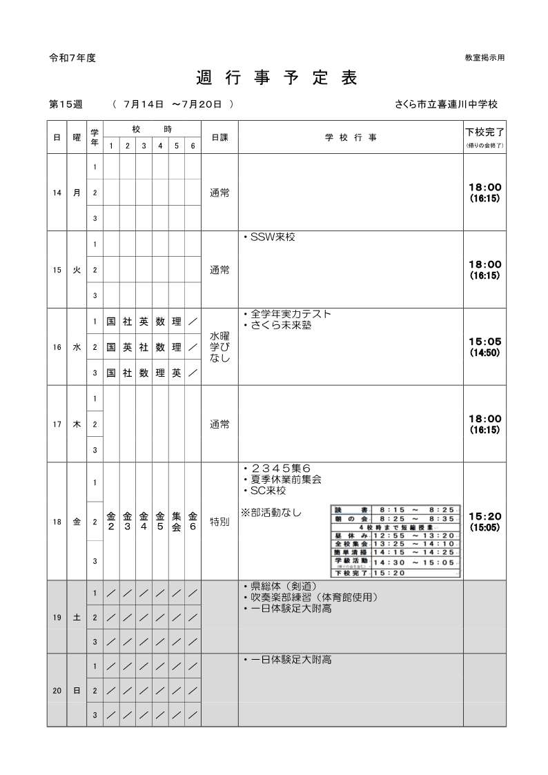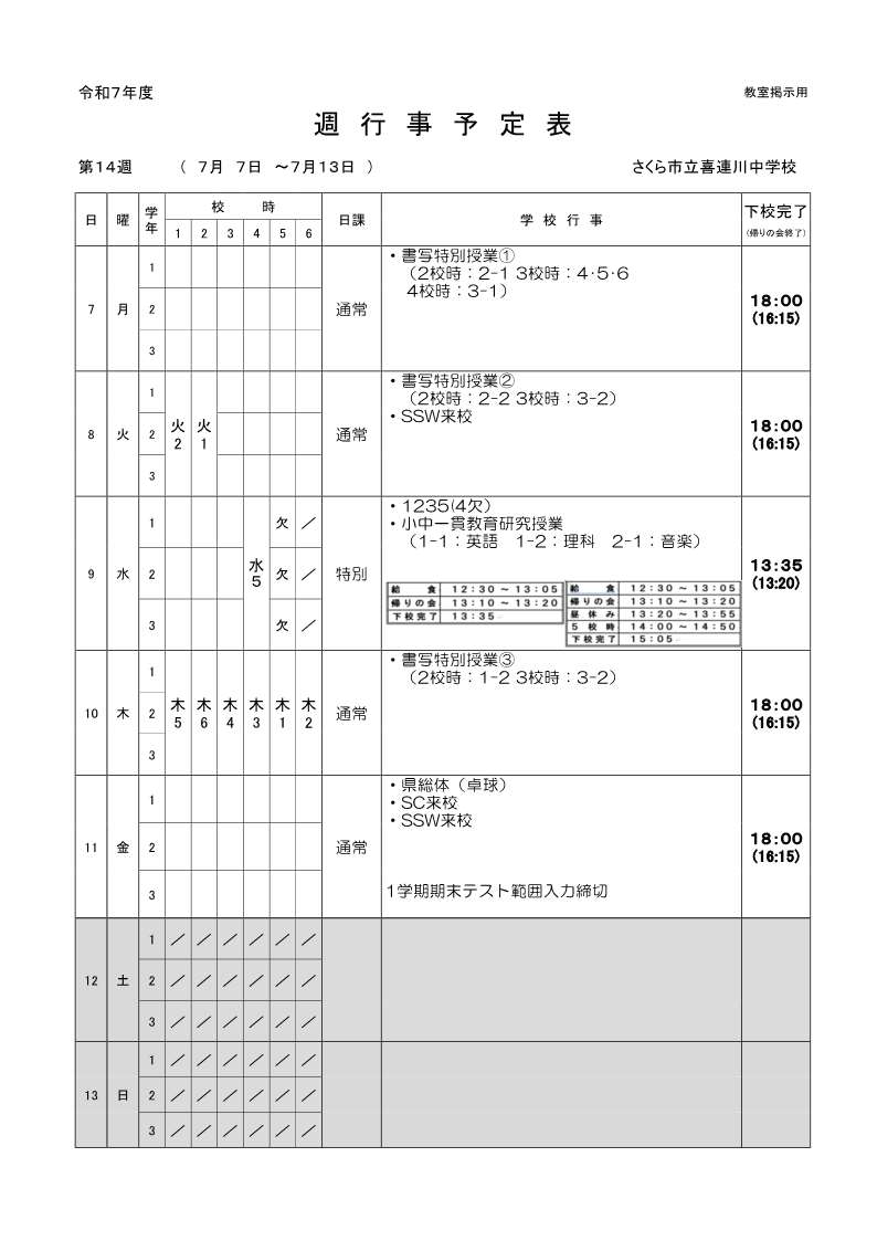 また、本日は、午後にさくら市の小中学校の先生方が本校に集まって研究授業を参観されます。研究授業のない学級は、給食後下校(13:35)となりますが、研究授業を実施する学級は、授業後下校(15:05)となります。