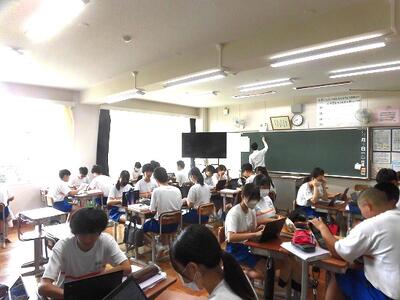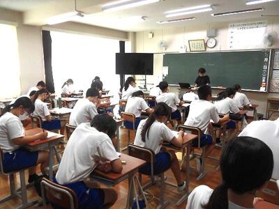 本日も暑い日となっています。生徒たちはしっかり学習に取り組んでいます。
