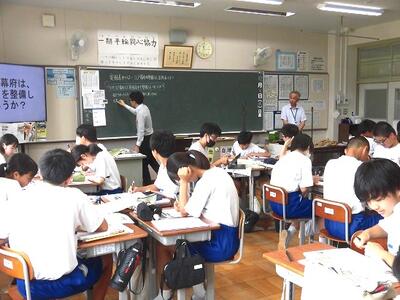本日の3・4校時に2年生社会科において、特別授業を実施しました。2回目の今回は、「江戸時代の交通網」というテーマでさくら市を通る奥州街道について学習しました。本日はさくら市ミュージアムから館長さんと副館長さんが講師としてきていただき、当時に使われていたものを見ながら学習しました。