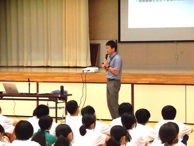 本日の6校時、1年生とその保護者の皆様を対象とした「親子学び合い事業」を実施しました。講師としてとちぎネット利用アドバイザーである 髙瀬 亮 先生をお迎えし、講演をしていただきました。ほとんどの生徒が携帯電話・スマートフォンを使用している実態を踏まえ、問題の未然防止とよりよい生活の実現のためにどのように携帯電話等について考えたらよいかを学ぶ目的で実施しました。保護者の皆さんも多数参加してくださりありがとうございました。