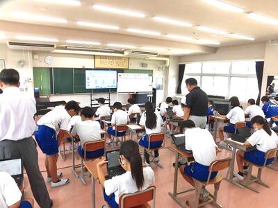 本日の5校時に、さくら市の小中一貫教育に係る研究授業を本校で実施しました。音楽・英語・理科の授業を行いました。さくら市の小学校と中学校からたくさんの先生方が参観に来て下さいましたが、生徒達は、普段通り一生懸命に授業に取り組んでいました。小学校でお世話になった懐かしい先生方に会えて生徒達もうれしそうでした。