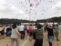 今回の写真は「PTAまり入れ」の様子です。今年は赤白の2色対抗でしたので、どのような展開になるのかと思っていたところ、最初はばらばらにかごを狙っていたのが、しだいにかけ声の下、一斉に狙うようになっていました。そして、結果は…。なんと赤と白とも37対37の同数だったのです。私の経験では初めての出来事でした。会場が大いに盛り上がったところで引き分けというのも決まりが悪いので、2回戦が急遽行われることになりました。その結果は…。これも驚きでわずかの差で勝敗が決しました。参加された皆様、お疲れ様でした。