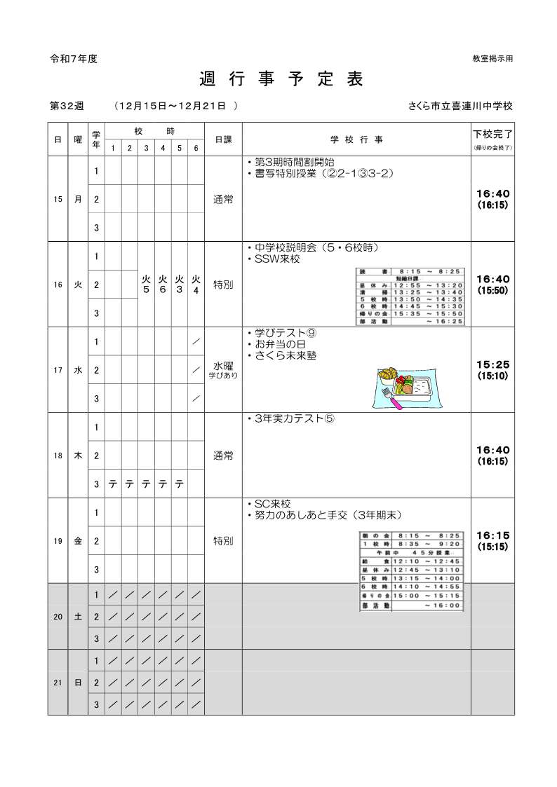 本日は、3年生が期末テストを実施し、1・2年生は市学力状況調査を実施しています。