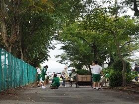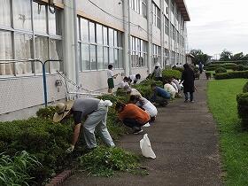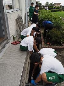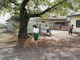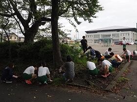 校舎周辺を確認し、折れた枝を片付けるなどしました。