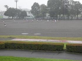 雨天のため、紅白それぞれが新体育館、旧体育館を使い、