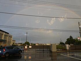 昼休みに、ある学級の生徒が数名、雨の校庭で