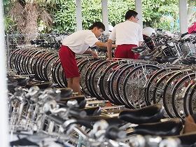昇降口の外や駐輪場の横であいさつ運動を行いました。