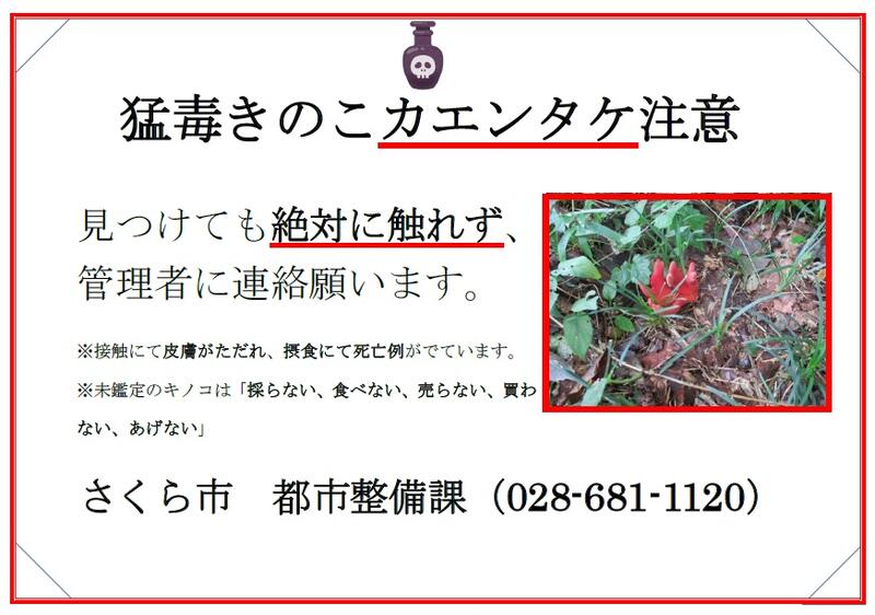10月5日(金)に、勝山地区の山林において、「カエンタケ」と言われる毒キノコが発見されました。このキノコは、触れても炎症を起こしてしまうほどの猛毒キノコです。